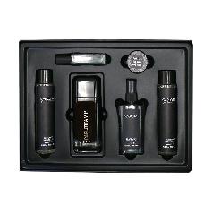 تتضمن مجموعة الهدايا الرجالية المكونة من 5 قطع عطرًا كبيرًا وزجاجة اختبار صغيرة مع نفحات من الفانيليا والمسك الأسود، ومرطب للشفاه، ومزيل عرق للجسم، ومنظف للجسم، ولوشن للجسم.