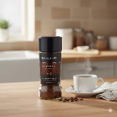 قهوة إسبريسو سريعة التحضير مصنوعة 100% من حبوب أرابيكا تتميز بنكهة داكنة وشوكولاتية مع درجة كثافة 8 من 10، مما يشير إلى أنها قهوة قوية وغنية المذاق.