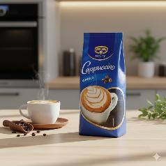 كابتشينو كروجر كلاسيكو مسحوق مشروب منكه مصنوع من حبوب قهوة سريعة الذوبان ومسحوق حليب ناعم يُقدم مشروبًا ساخنًا كريميًا مع رغوة الحليب.