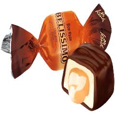 نقل شوكولاتة محشوة بكريمة البروليه، وهي مزيج رائع وذو طعم شهي ولذيذ. A chocolate candy filled with crème brûlée, a unique blend with a delicious taste.