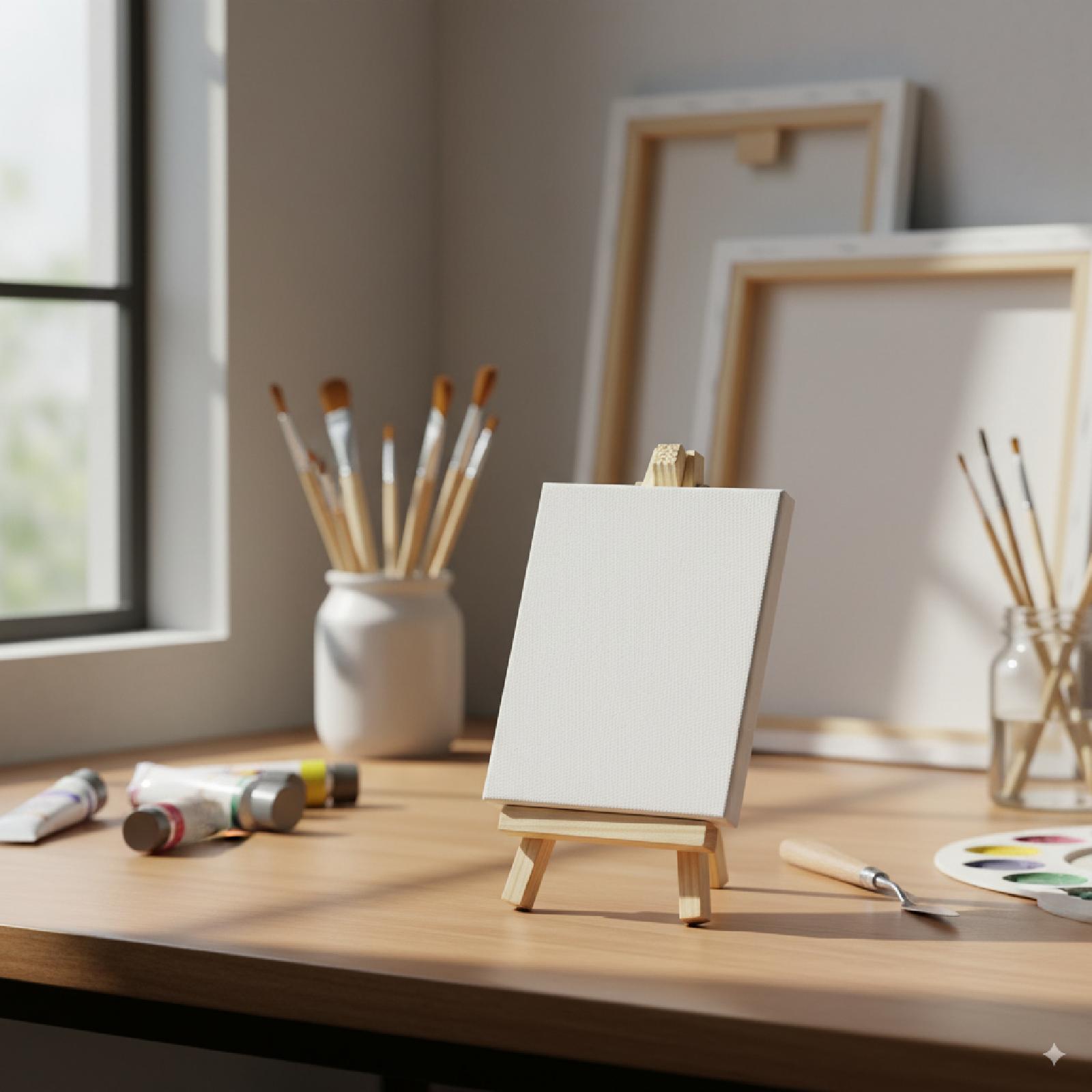لوحة قماشية صغيرة مع حامل خشبي طبيعي خفيف الوزن وسهل الحمل يمكن استخدامه للرسم عليه باستعمال الألوان الزيتية والألوان المائية إلى الأكريليك مثالي لدروس الرسم ورسم الأطفال وتزيين المنزل وعرض الصور.