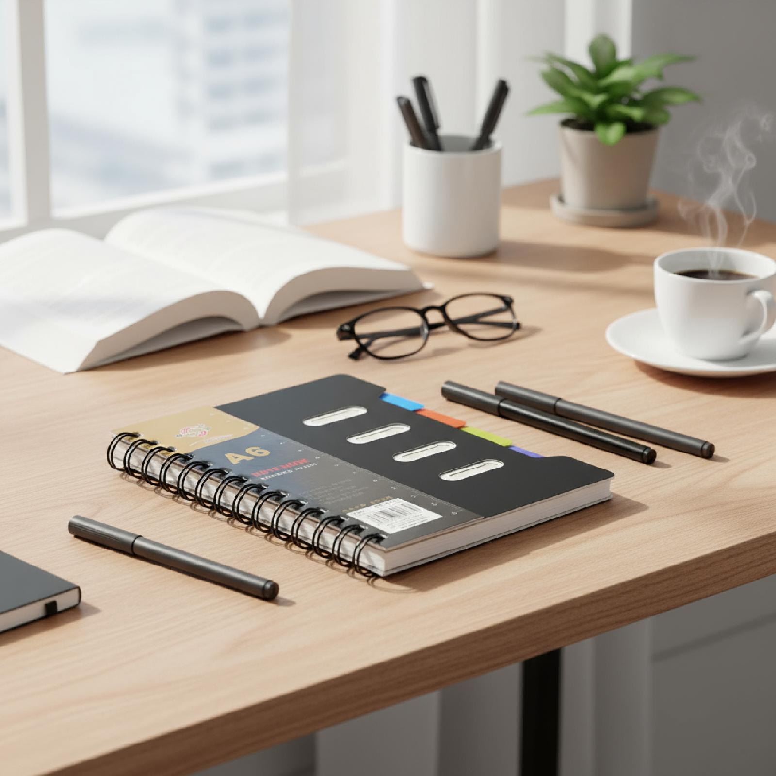 دەفتەرێکی بچووک و جیاوازە و تەلە، کە کراوە بە چەند بەشێکەوە و هەر بەشێک ڕەنگێکی دیاریکراوی هەیە و دەتوانیت بەکاریبهێنیت بۆ نوسینی تێبینی، خوێندن، یان بۆ کارەکەت.