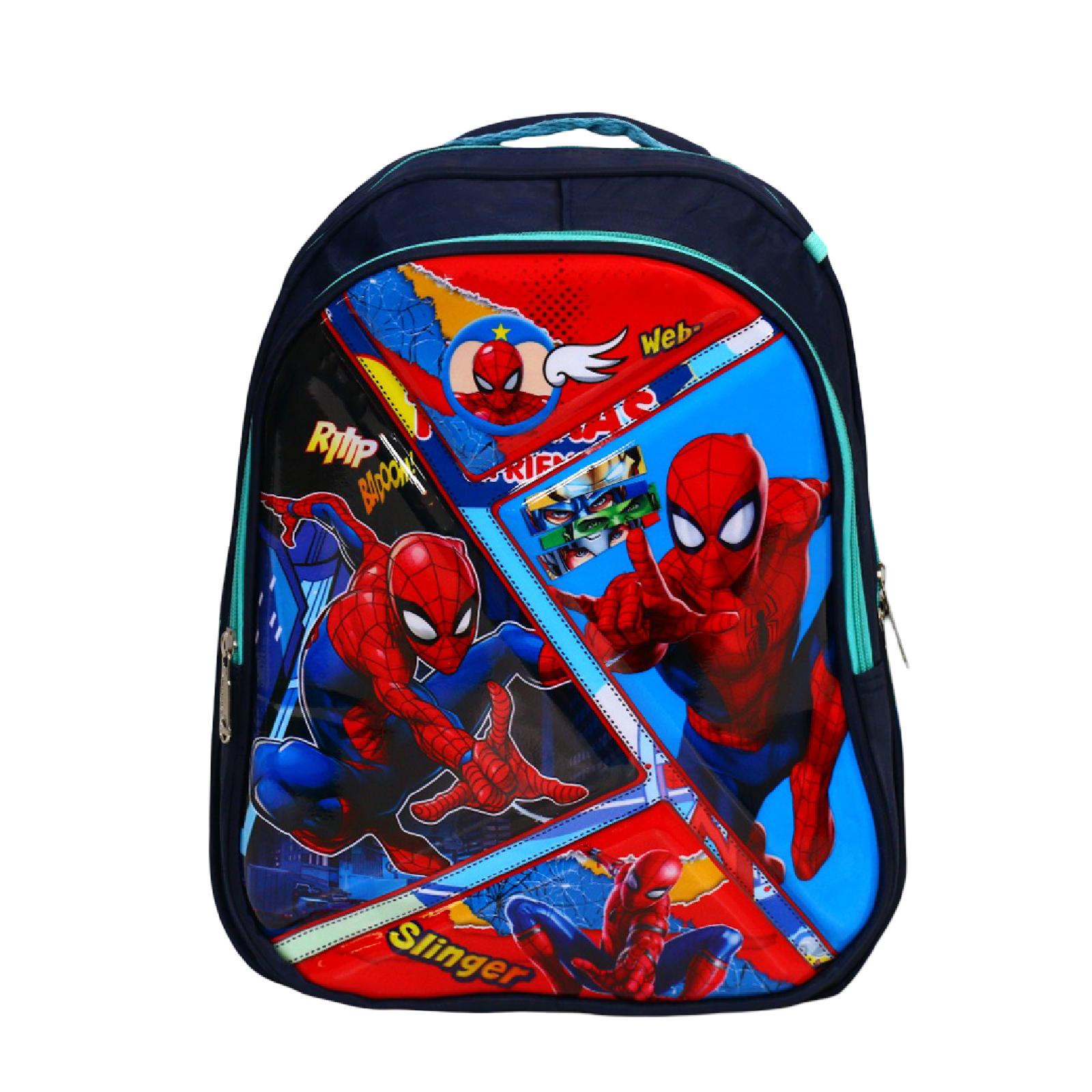 حقيبة مدرسة جميلة جدا على شكل سبايدر مان ومميزة فهي مكونة من قطعتين حقيبة كبير ذو خانتين مع محفظة اقلام وجيوب جانبية لوضع الماء .