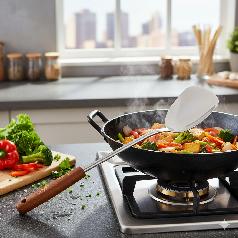 کەوگیرێکی ئاسنە کە دەسکێکی داری هەیە و دەتوانیت بەکاری بهێنیت بۆ تێکەڵکردنی خواردن و تێکردنی خواردن.