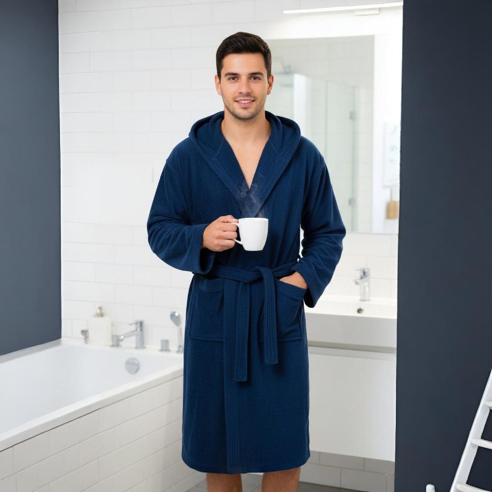 روب حمام ذو جودة عالية جدًا، 100% قطن، ومناسب لكلا الجنسين يمتص الماء بشكل ممتاز كما أن به غطاء رأس (قبعة) ممتازة لتجفيف شعرك ورأسك بسهولة.