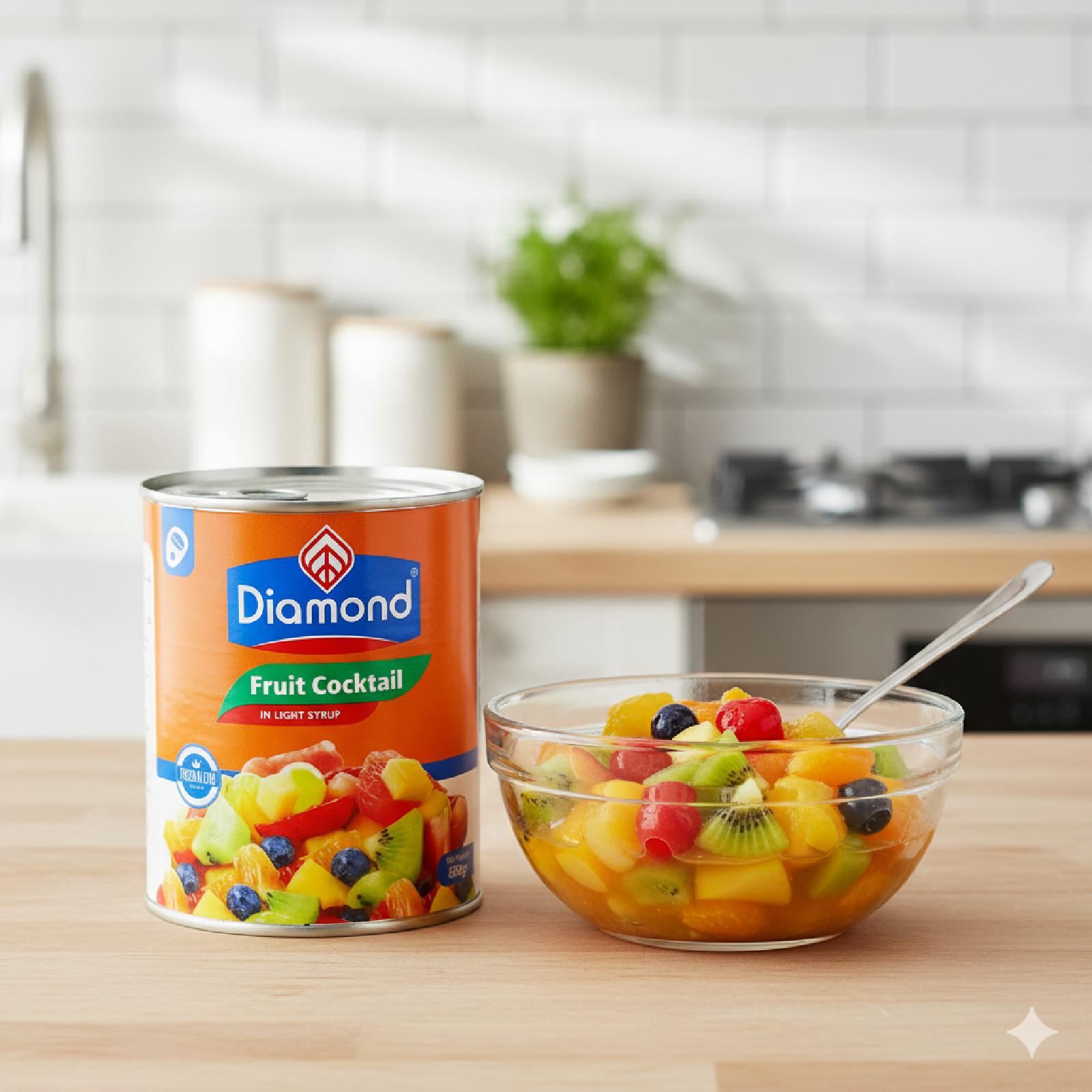 فواكه مشكلة معلبة فهي مزيج ملون وشهي من قطع الفواكه المتنوعة يمكن تناولها كما هي كتحلية باردة، أو استخدامها في تزيين الحلويات والعصائر والكوكتيلات، لتضيف لمسة من النكهة المثالية إلى أي طبق.