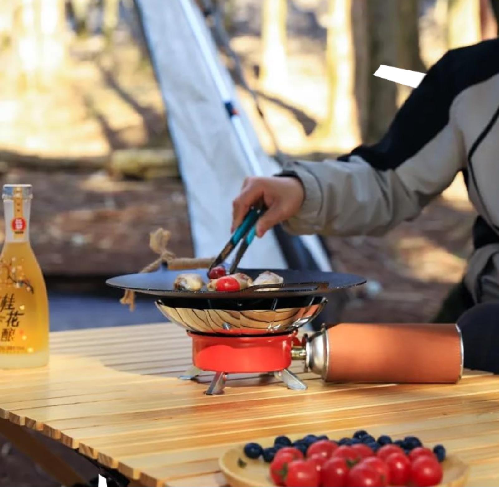 موقد غازي قابل للطي مع قوة نيران قابلة للتعديل ممتاز للتخييم وامن ويساعدك لطبخ طعامك وقت النزهة والتخييم.
