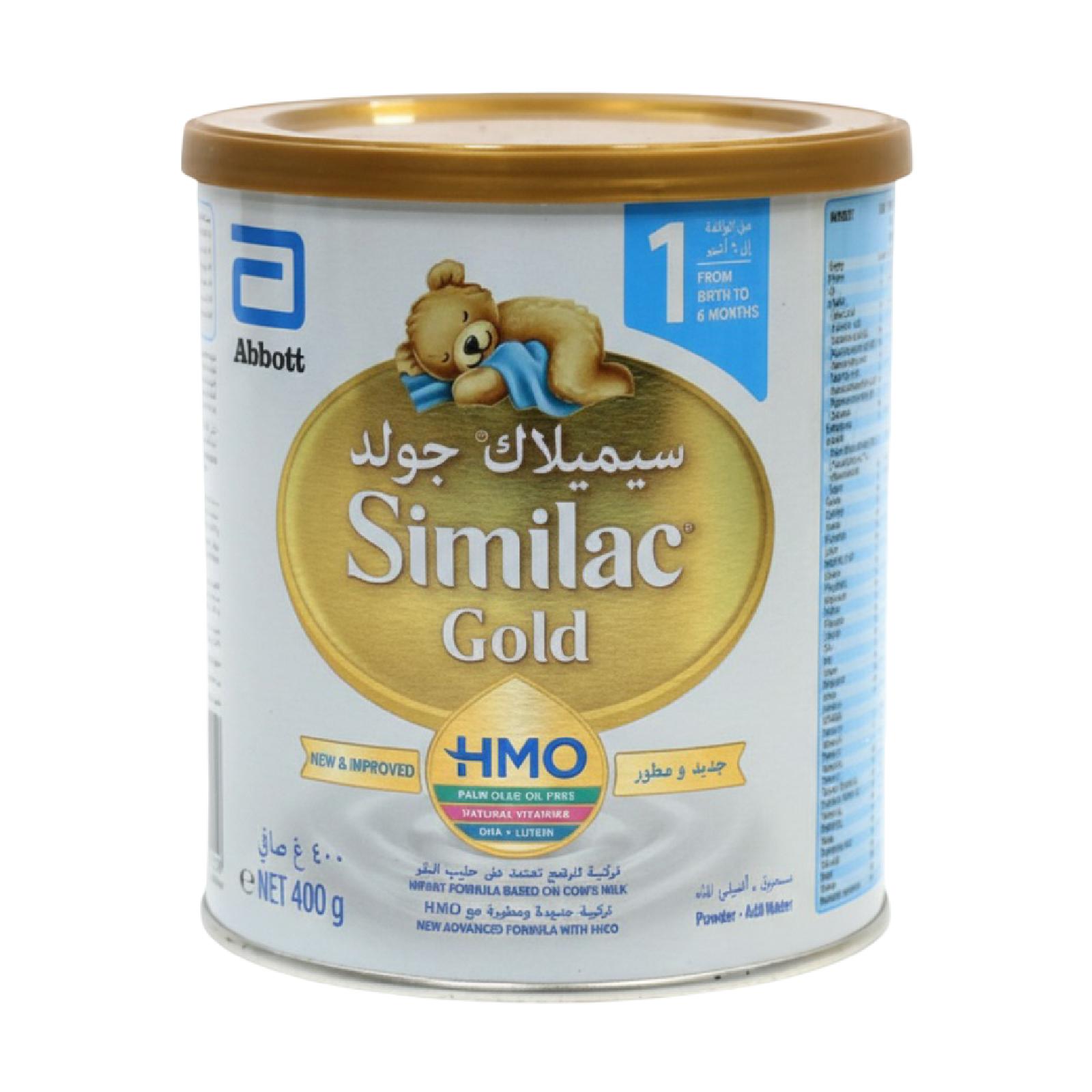 حليب سيميلاك جولد، هذا النوع مخصص لاعمار من يوم واحد إلى 6 أشهر، ومن مكوناته فيتامين E الطبيعي.