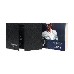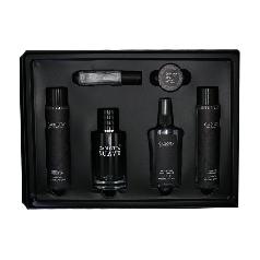 طقم هدايا رجالي مكون من 6 قطع يشمل عطراً وعينة صغيرة تحتوي على نوتات العنبر والبرغموت والفانيليا، مع مرطب الشفاه ومزيل رائحة الجسم وقطعتين من غسول الجسم.