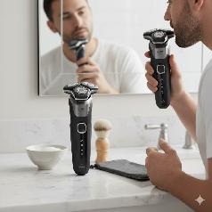 This washable beard trimmer allows you to shave both dry and wet, protecting your skin from irritation. It features an LED display with a battery level indicator, 360-degree rotating heads, and a built-in trimmer that runs for 60 minutes on a single charge.