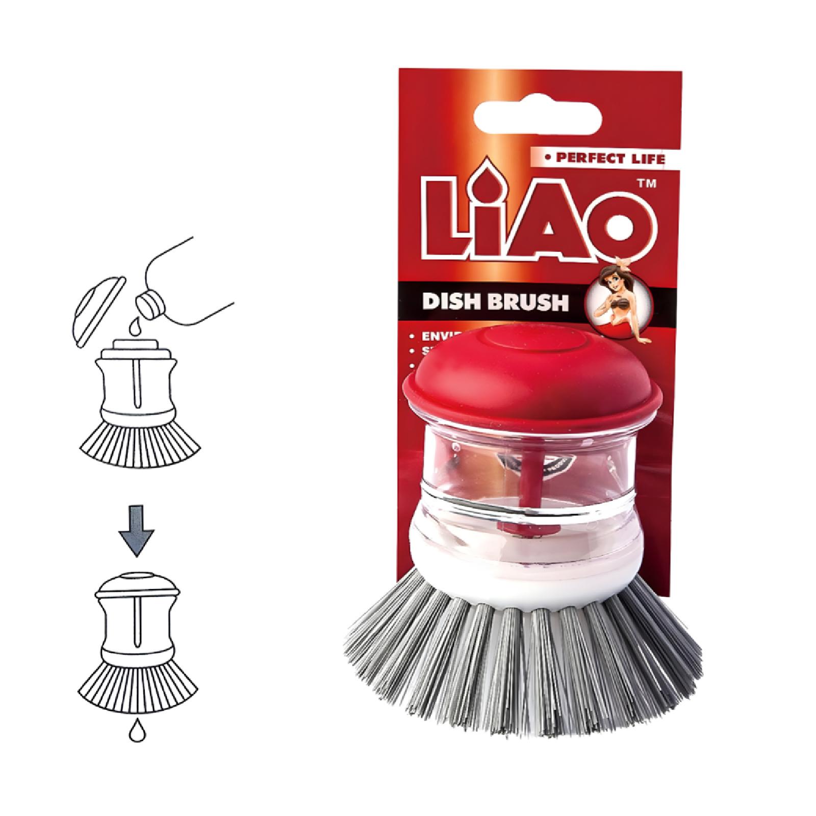 The self-dispensing cleaning brush with soap reservoir is very easy to use Just open the top and add the soap or detergent.