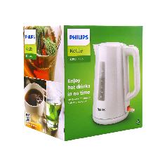 غلاية فيليبس البيضاء الأنيقة تسخن الماء حتى الغليان في لحظة تتمتع الغلاية بقوة 2200 واط، لذا فإن عنصر التسخين الفعال يغلي الماء بسرعة.