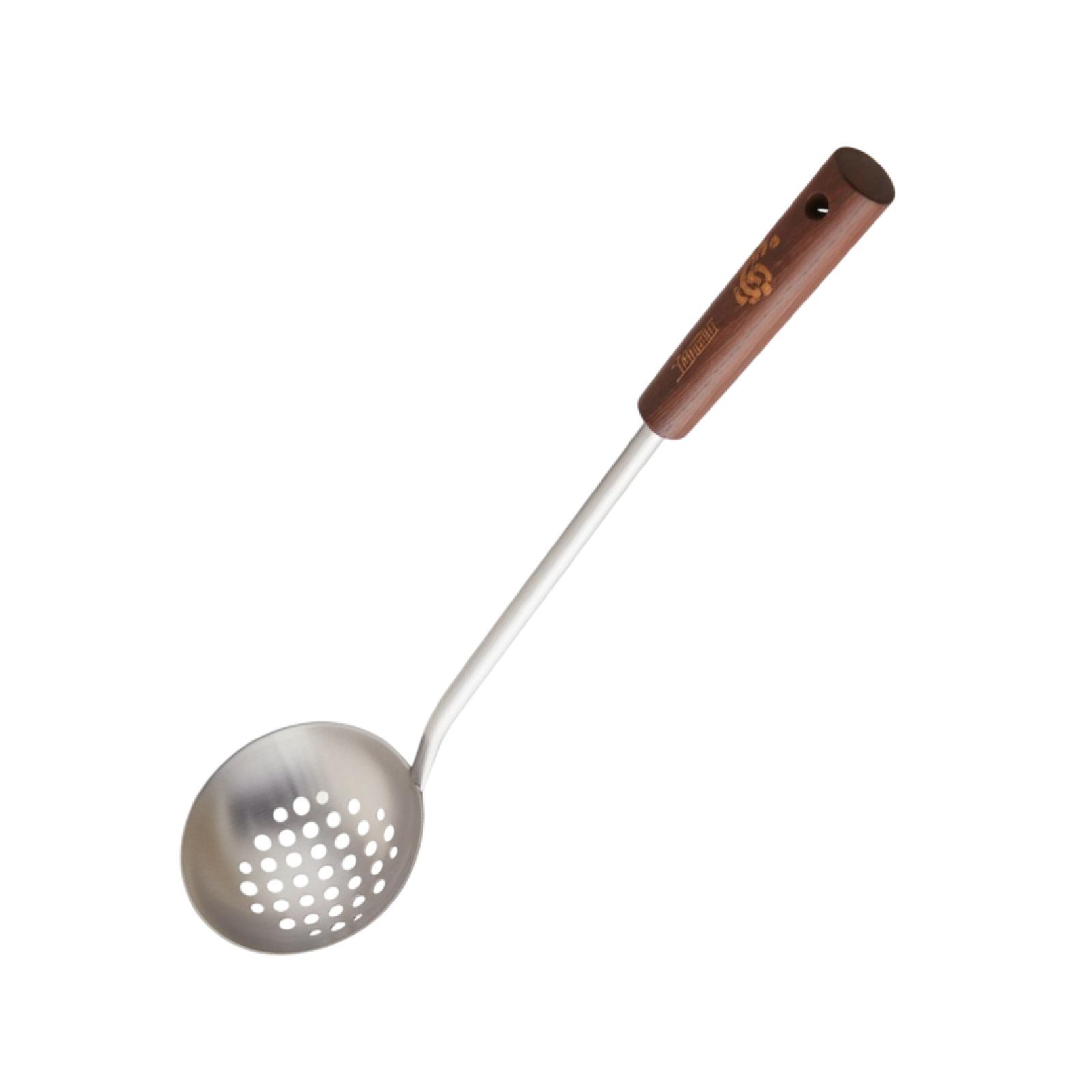 ملعقة من الفولاذ بمقبض خشبي مفيدةجدا للقلي او السلق او لتحريك الطعام .