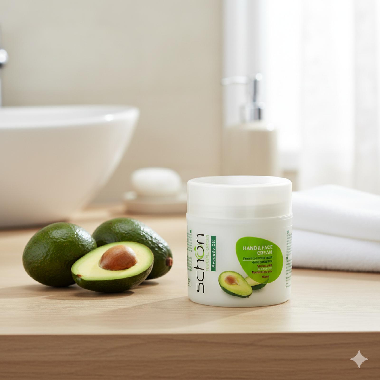 كريم ترطيب لليدين والوجه مكون من اجود انواع زيوت الافوكادو والجلسرين والفيتامين (A&E) يرطب ويلطف البشرة ويؤخر علامات الشيخوخة، مناسب للبشرة العادية والجافة.