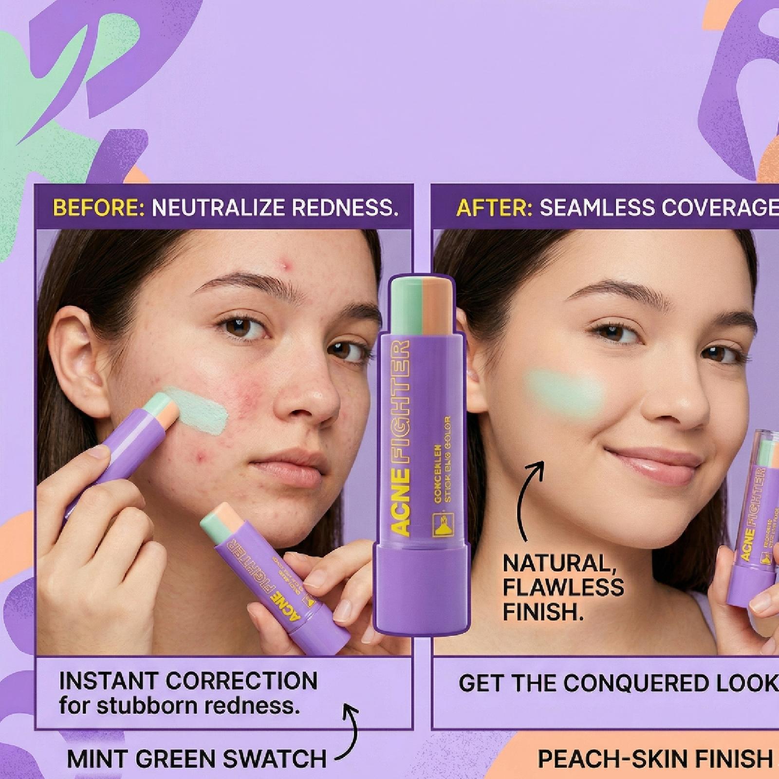 this Concealer Duo Stick Green Side Concealer Used to hide skin redness, blemishes, and acne spots and It can also be used as a highlight to brighten the forehead and the bridge of the nose, Beige Side Contour is Used to define facial features make cheekbones appear higher, and give the nose a slimmer look.